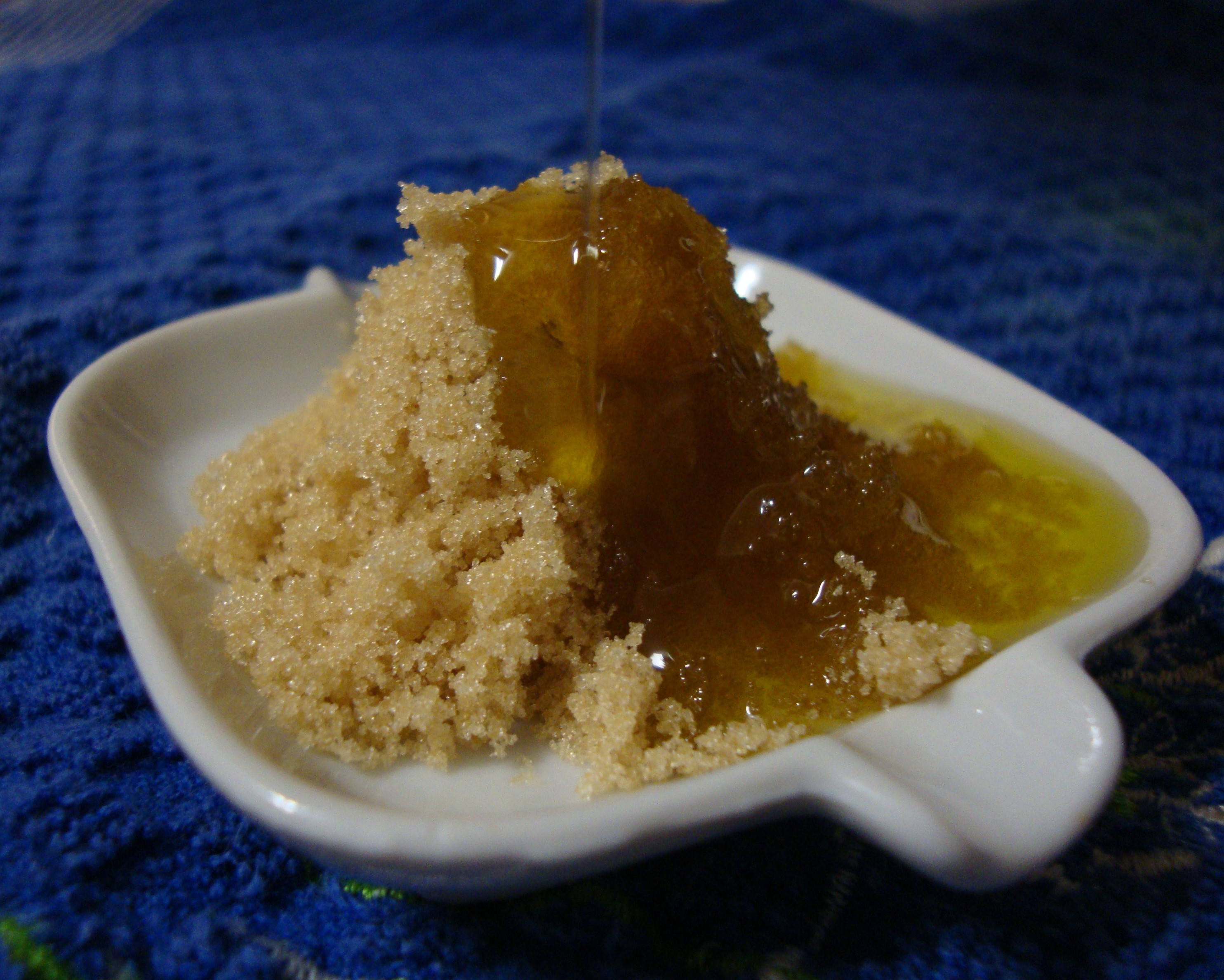 My easy peasy exfoliating scrub for today uses brown sugar and olive oil.
