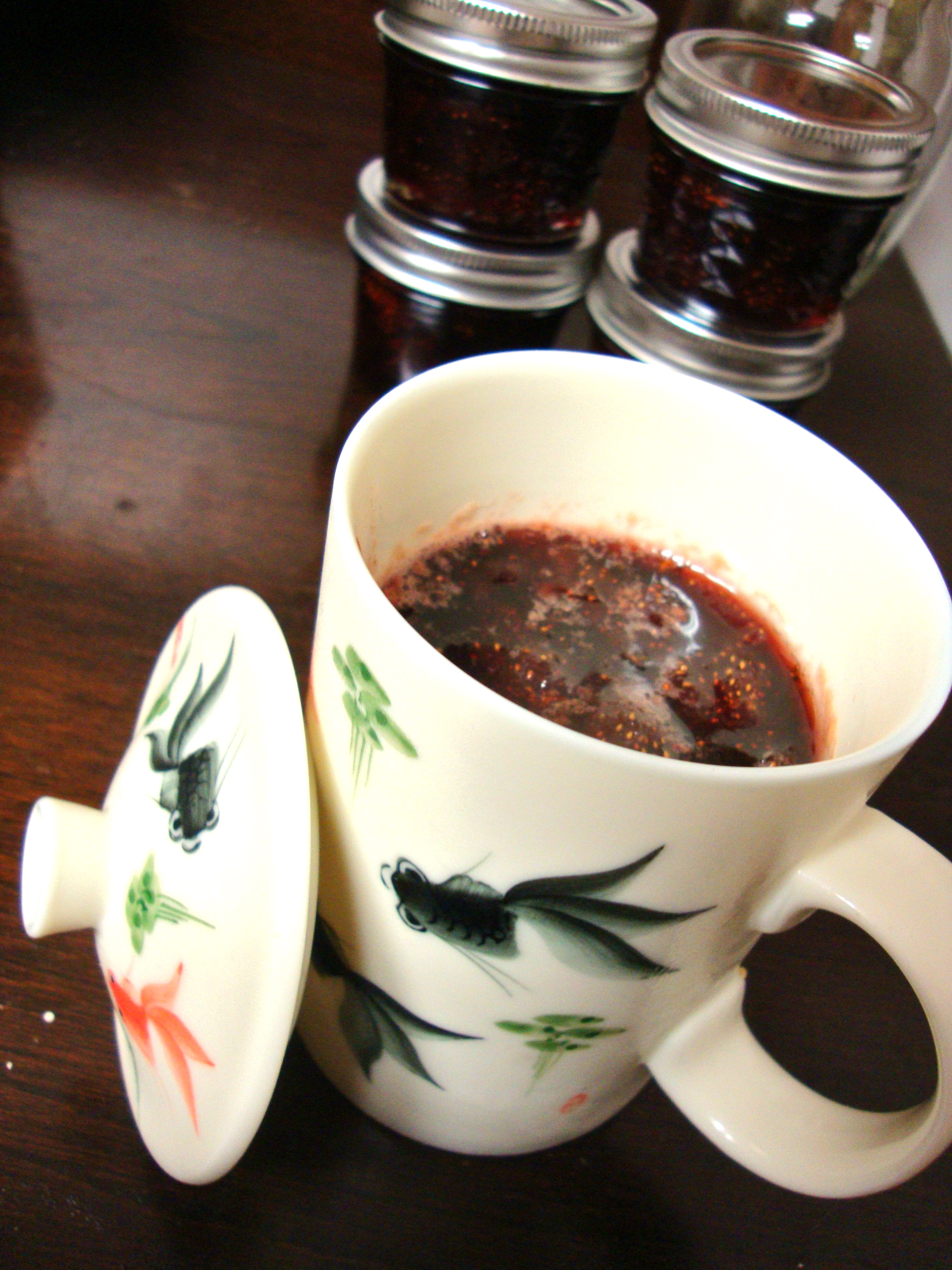 I also reserved one jars’ worth of jam as refrigerator jam by storing in a ceramic mug with a lid.