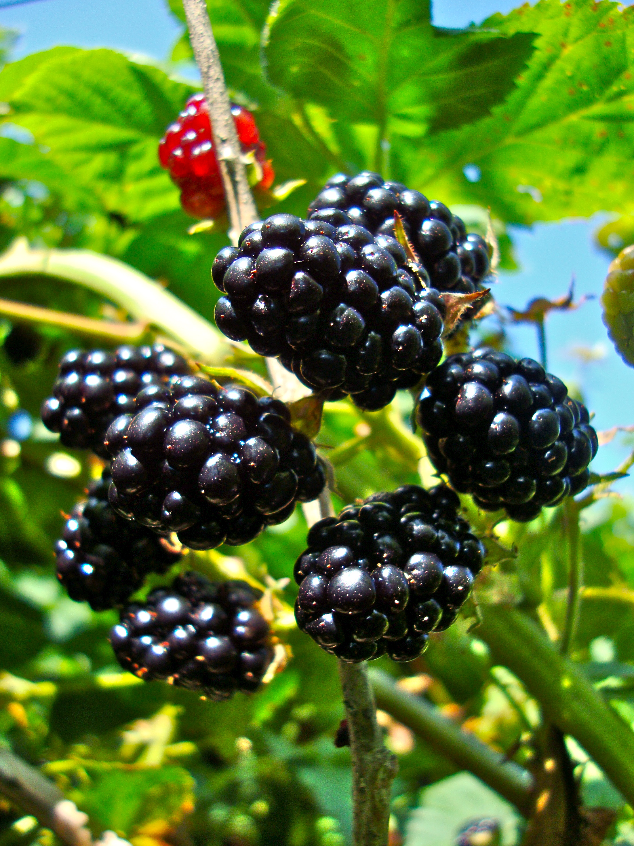 As a kid, the cousins and I would visit the grandparents farm every August. We ran 180 acres in the mountains of Virginia.  At least once during our visit we would load up onto the beat-up blue farm truck and drive up the pastures to the berry patch. As we crossed each field we would take turns opening the gates and shooing cattle. The cows followed us because they thought we were bringing them food.  No dummies, the cows followed us to our food. Blackberries.