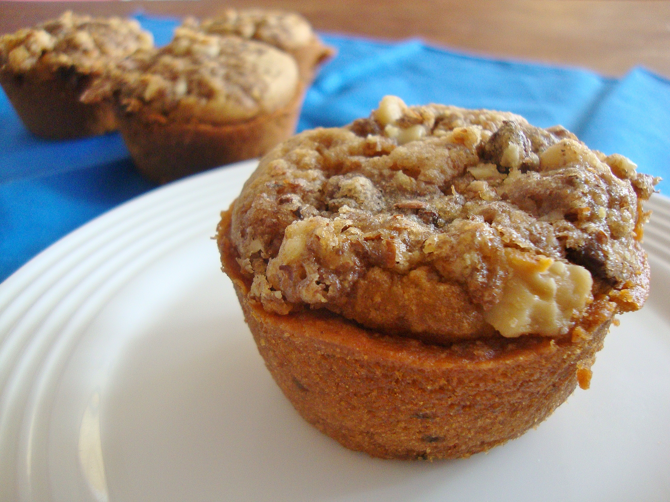 As I was brushing up on using applesauce instead of oil in baking I noticed that you could eliminate most of the ‘fresh’ items (egg, milk, etc) in favor of apple sauce. If you substitute shortening for the butter, then all of the ingredients can be found in a pantry. Trade out the butter for vegan margarine and you have a cruelty free cake. Piecing together and tweaking a few generic recipes I came up with Apple Strudel Muffins. These are super tasty, moist, and not too sweet. Apple cakes that are perfect for breakfast or dessert. Yields 1 dozen.