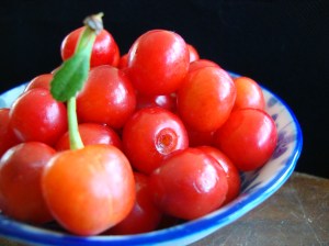 Yesterday I spent most of my time in the garden. I helped beans climb twine and planted a new trellis. I harvested lettuce, weeded everything, and seeded fall veggies. Most notably, I picked cherries. Surprize! I have a sour cherry tree. This thrills me to no end. I say “surprize” because some how we never noticed what kind of fruit was on the tree until it began to ripen. If I were a homebrew kinda gal then I would go big and try for a sour cherry lambic. But since I am just the small time eccentric I will probably turn these into jelly or preserve them in syrup.