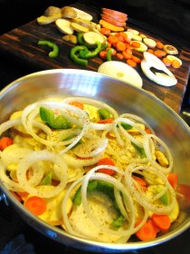 The variations on this could be endless. If you do not have exactly the veggies called for, please substitute anything you like.
