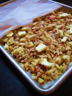 Coarsely chop apples. Toss the apples together in a bowl with lemon juice and 2T of the brown sugar. Allow to rest 5 minutes.
