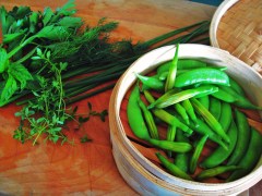 - 1c mixed sugar snap peas and daylily buds, blanched.