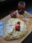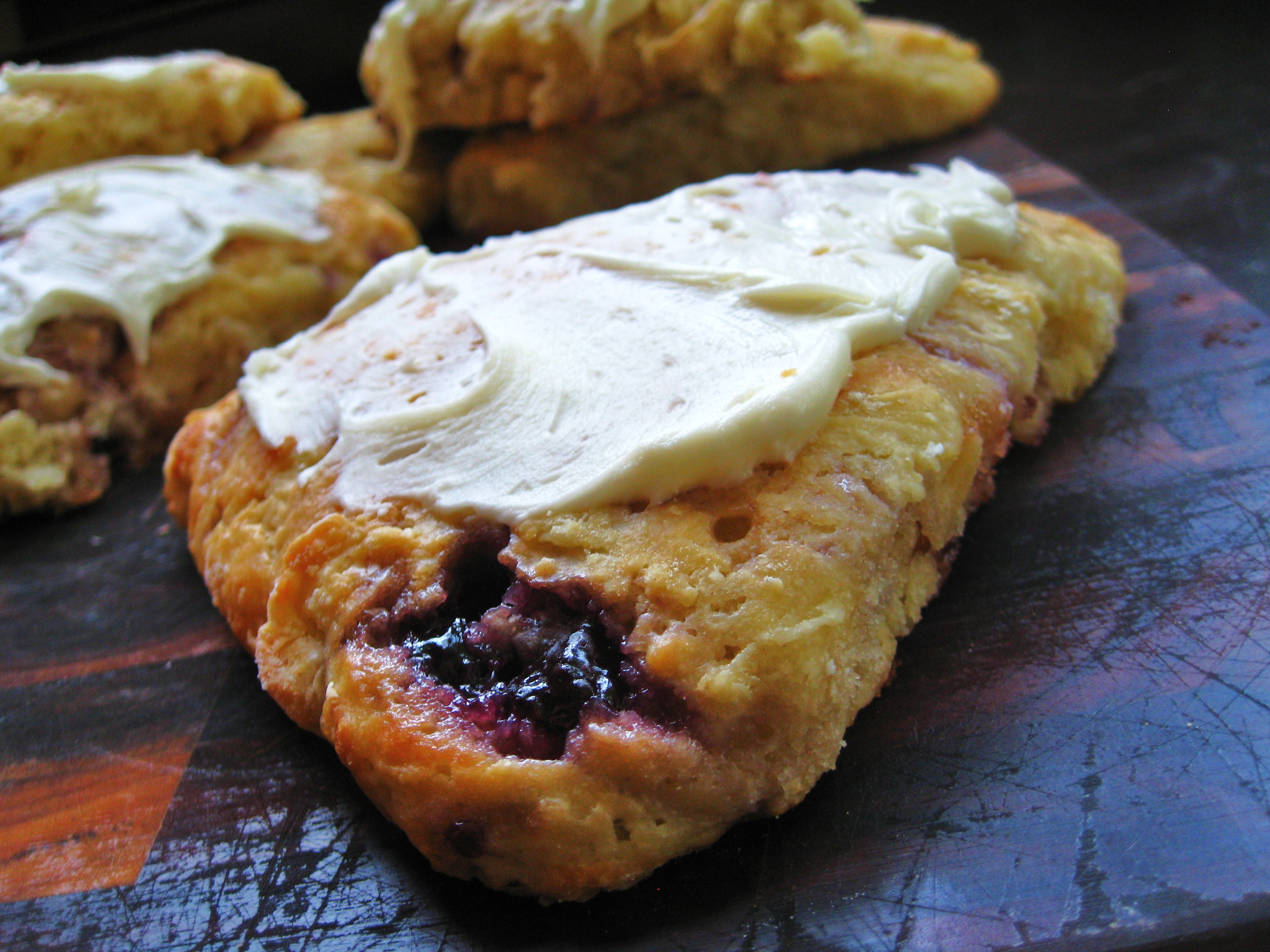 Finish the red and blue jam scones with a white chocolate frosting (aka white chocolate melted to spreadable consistency) or with a lemon juice and powder sugar glaze.