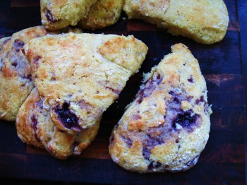 To make them patriotic, I have used blueberry preserves and strawberry jam, but any preserve or dried fruit will work. In fact these scones are extra tasty made with chocolate chips, nuts, and coconut, too.