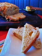 I know that cheesy bread is not exactly Thanksgiving fodder but this loaf is so tasty and addicting that I am sure you will find an excuse to serve it. We polished off most of the loaf with lentil soup the night it was baked. Anything that was left didn’t make it past breakfast. Cheesy bread, simply toasted no butter needed. Next time I will make a double batch because I really want to have enough day old bread to cube and make croutons.
