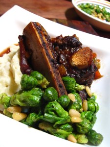 I told so many people about how I have been using beer jelly in the crock pot I thought I should write it all out for you. We have made this with beef, pork, and chicken. Bone in and bone out. Sometimes I use all the veggies, sometimes I use just one. Each time we are licking the pot clean! This time I made beef short ribs and served it over a sun-choke, garlic, and potato mash with a side of the teensiest Brussels sprouts you have ever seen. The sun-chokes, garlic, onions, Brussels sprouts, and carrots were grown by us.