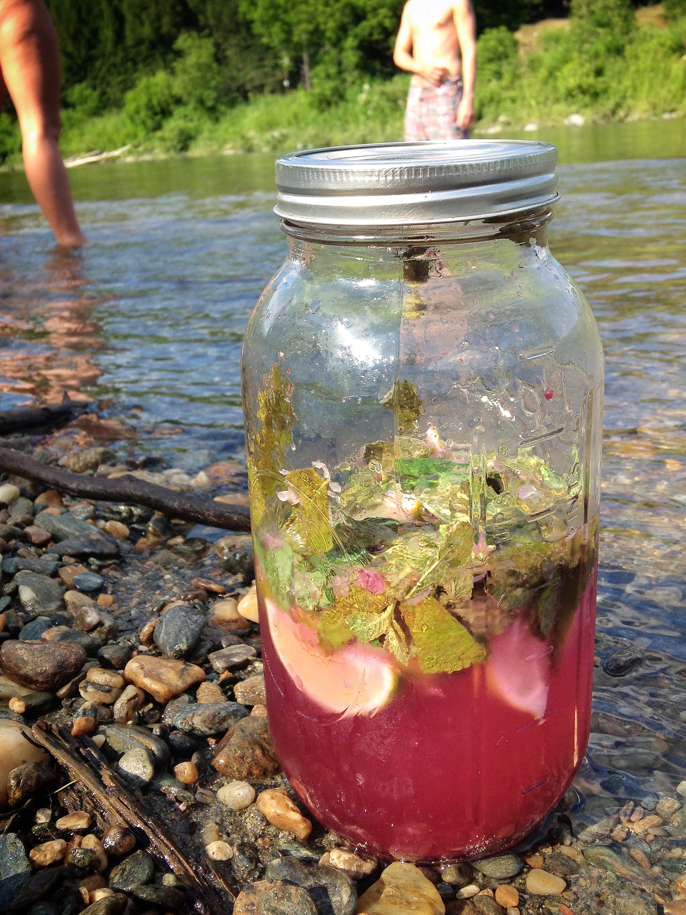 Good thing I am awesome at pretending! Right now I am pretending hard core. In my pretend world my Twin is still here are we are floating down a river drinking sippy cups of jammy mojitos. In actuality I am pulling on a sweater and watching my late season cool crops start to really enjoy life. But, keeping the summer alive, I am still sipping on the jam cocktail.