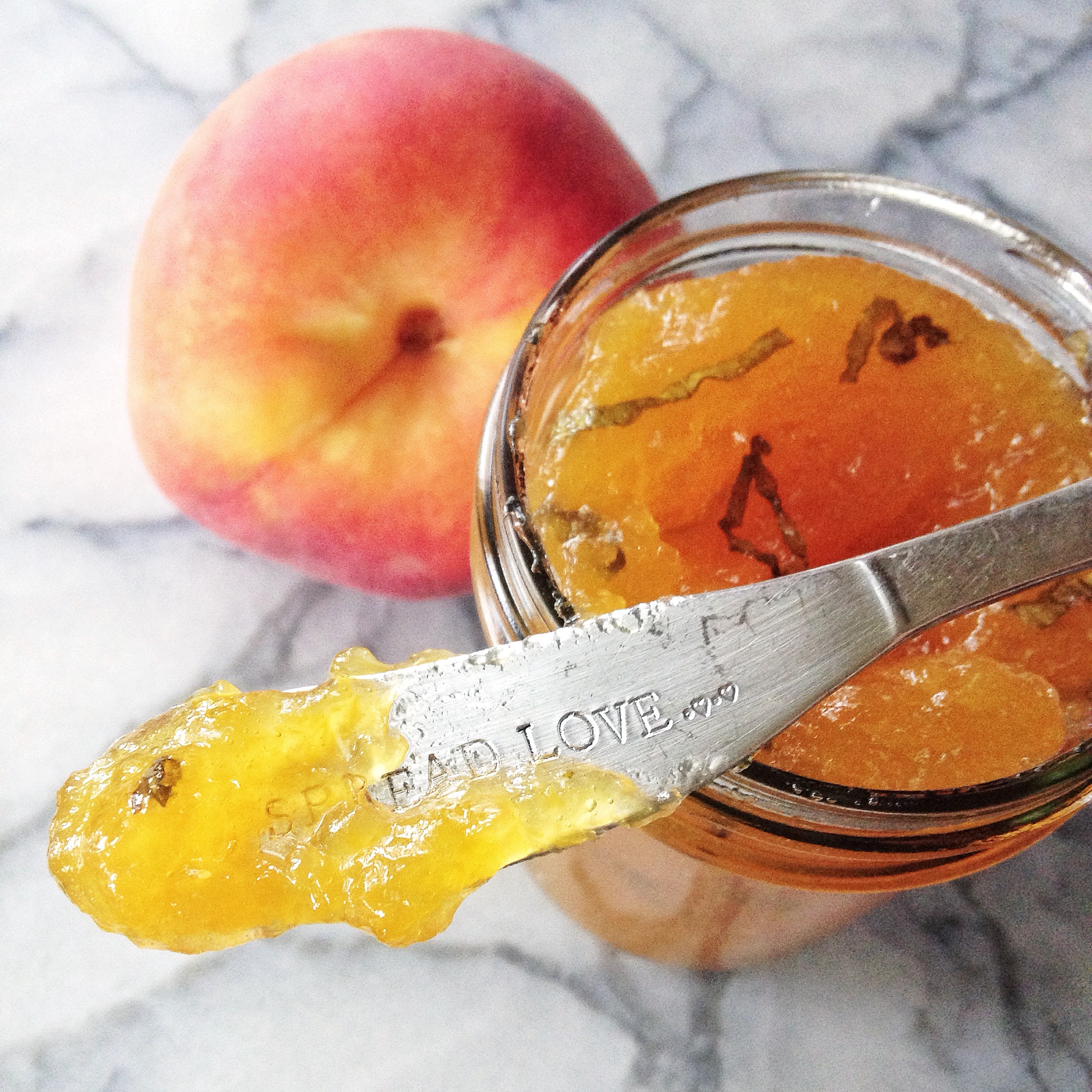 Low Sugar Peach Basil Jam (Yield 18 – half pint jars*)