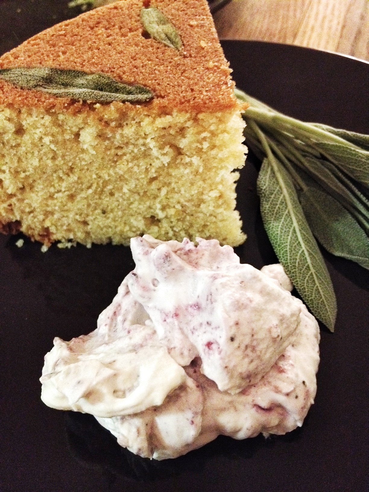 Jam Fool with Olive CornmealOil CakeOlive Oil Cornmeal Cake with Blueberry Sage Fool